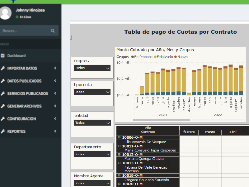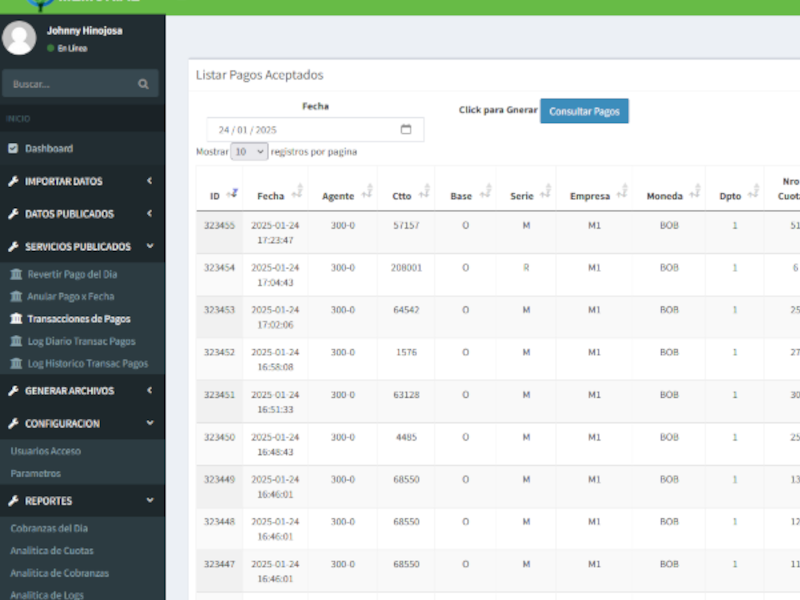 El Software Middleware de Cobranzas permite a las Empresas contar con un Unico medio para gestionar y transaccionar los pagos de cuotas, el middleware puede disponibilizar las deudas generadas en el ERP Interno de la empresa, y gestionar pagos, cuenta con un conjunto de APIs para atender y conciliar pagos desde cualquier Entidad Bancaraia o Agente de Cobranza, cuenta con Log de transacciones, Conciliacion diarias, Reportes Power Bi e Indicadores.